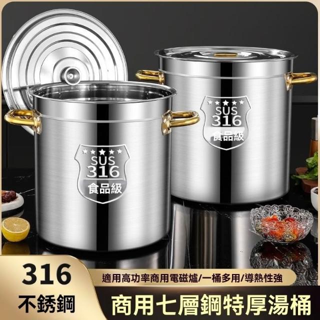 316不鏽鋼複閤底湯桶 帶刻度不銹鋼商用湯桶 帶刻度速熱節能湯桶 燒水鹵桶大容量加厚家用帶蓋湯鍋 燉鍋 加厚湯桶