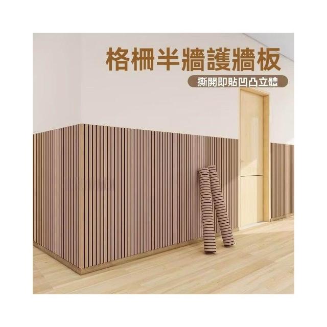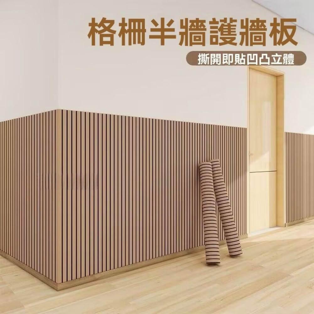 格柵闆墻裙 護墻闆 店鋪墻麵裝飾墻貼紙 自粘防水防潮3d立體墻貼 木紋牆貼 輕奢牆貼