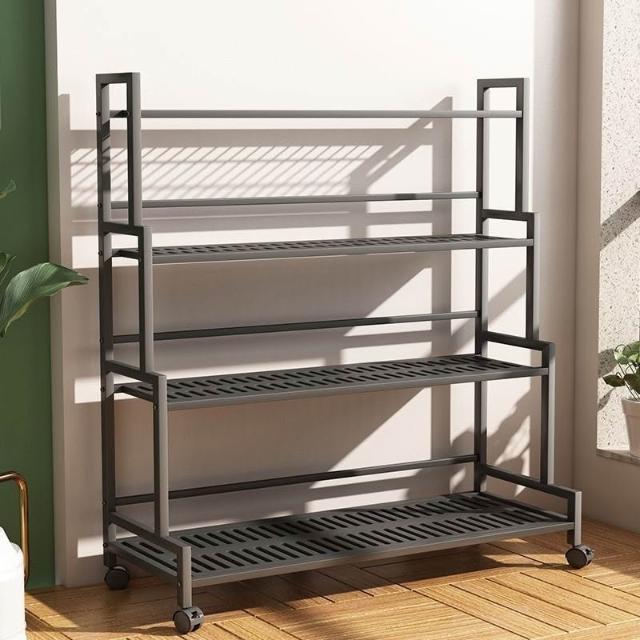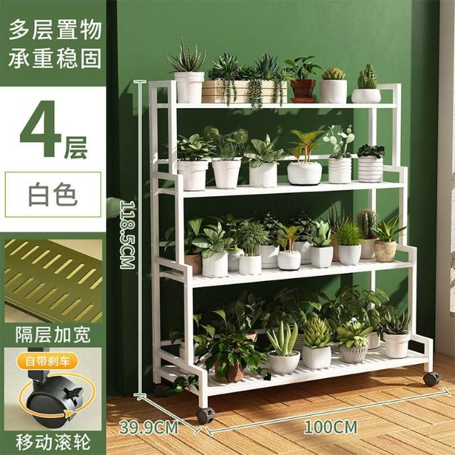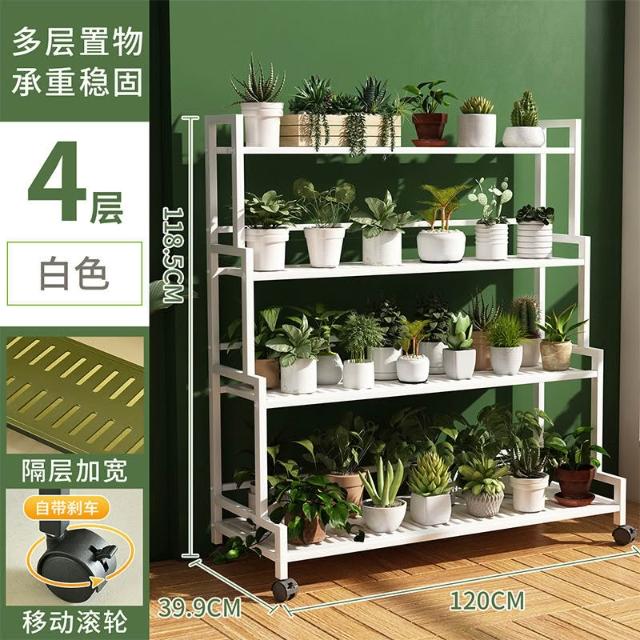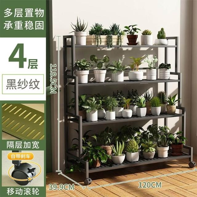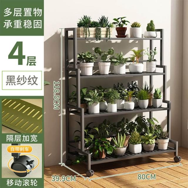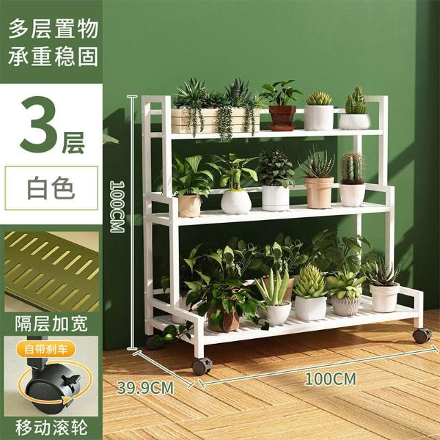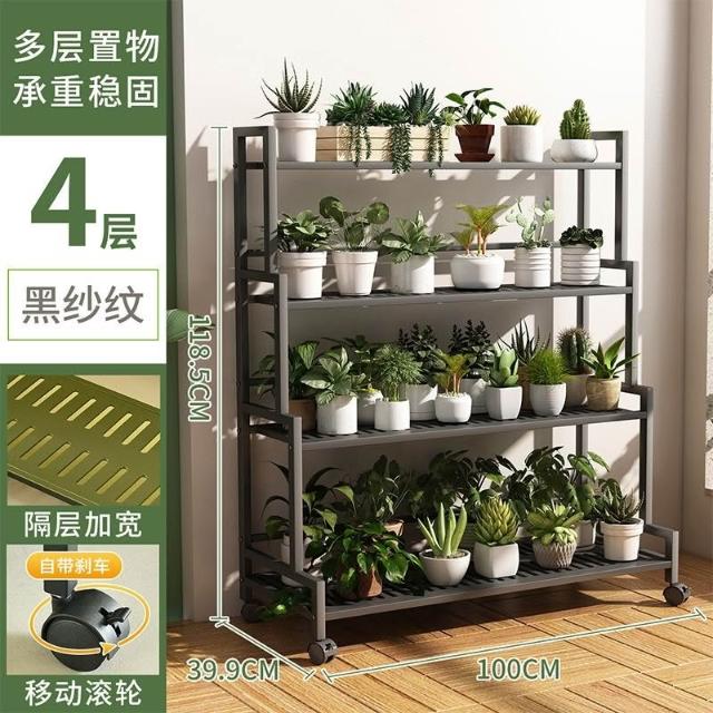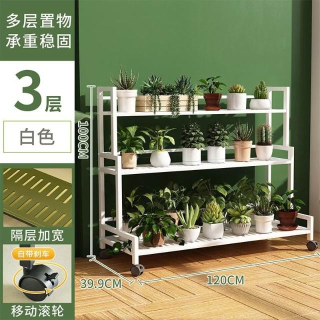 帶剎車輪花架 階梯花架 陽臺置物架 鐵藝多層 客廳落地式花架子 可移動簡約戶外 庭院花架 陽臺花架 輕奢花架