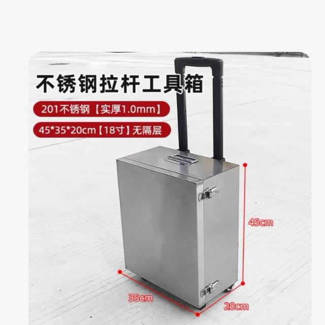 不鏽鋼工具箱 白鐵工具箱 白鐵收納箱 防水不銹鋼行李箱 五金工具箱收納箱 帶滑輪箱子儲物方箱拉桿工具包