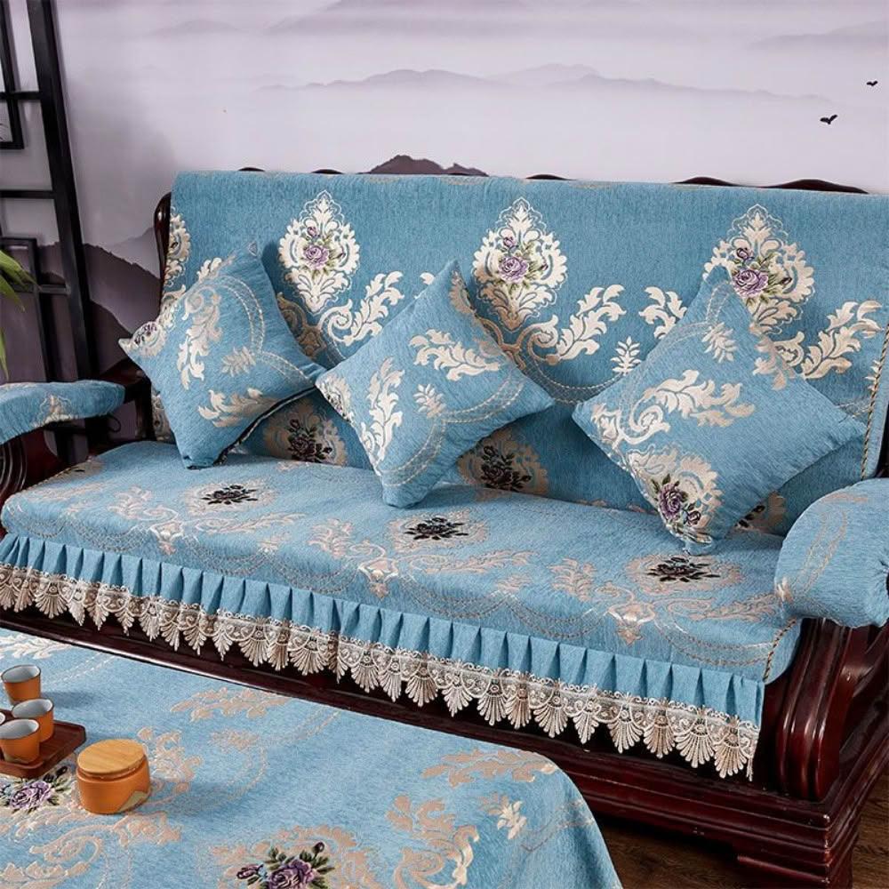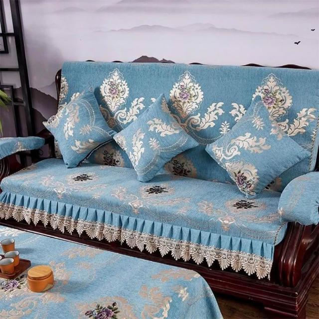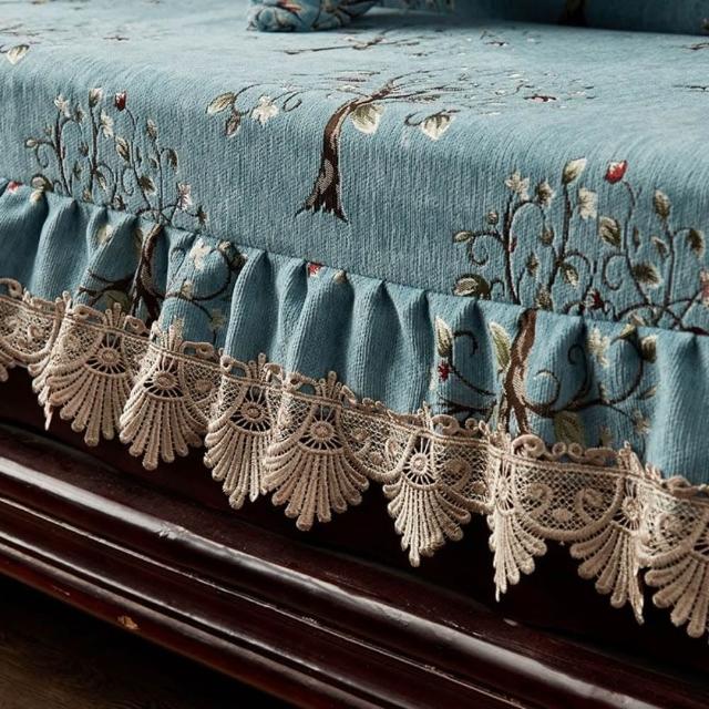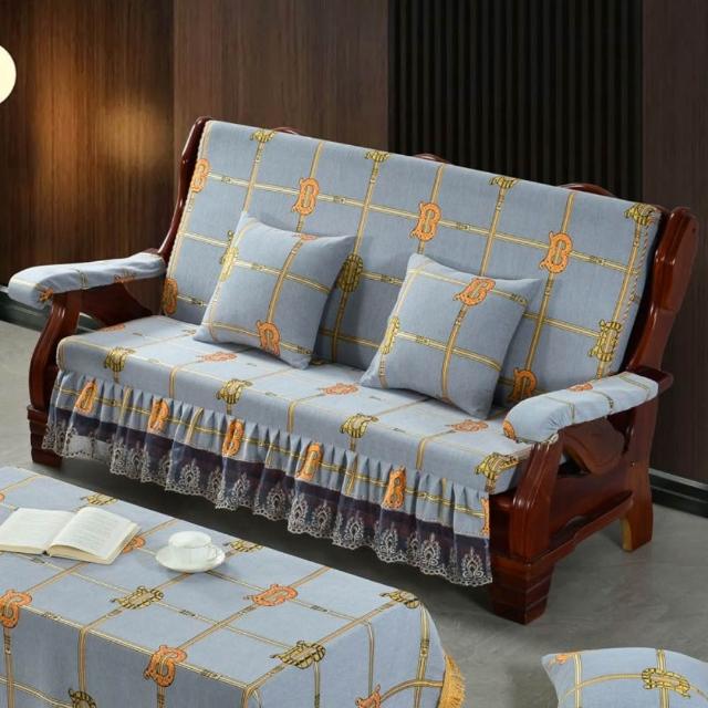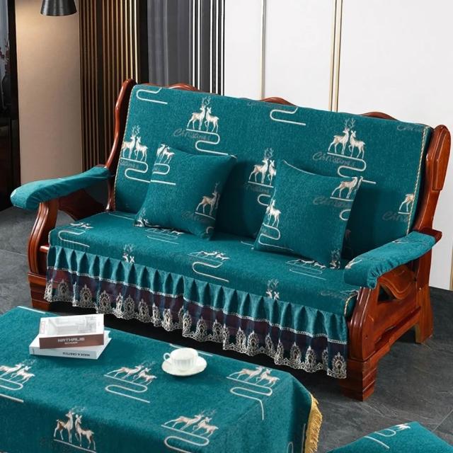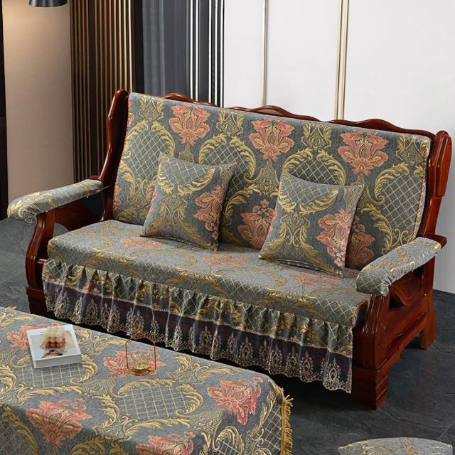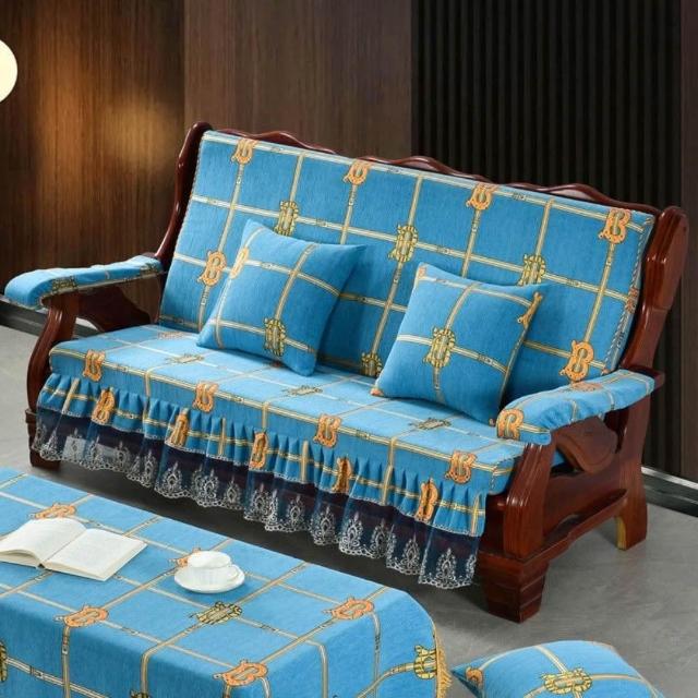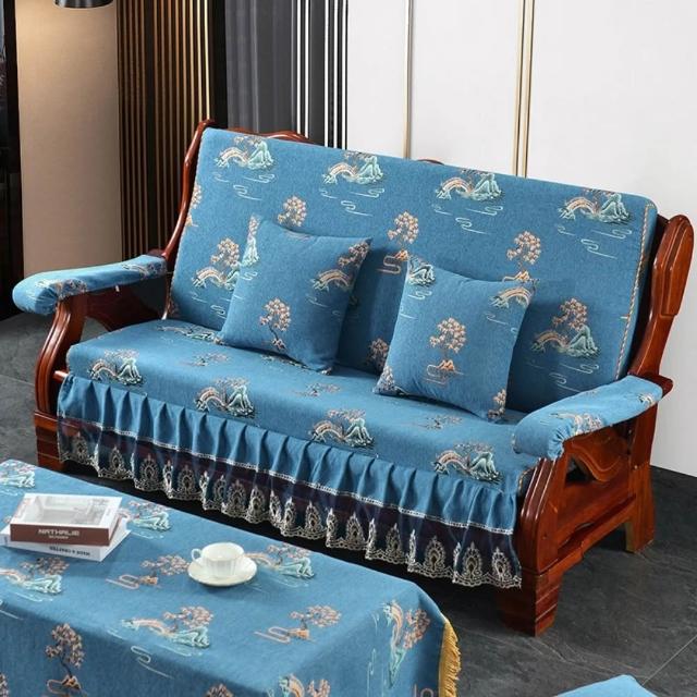 輕奢復古新中式老式木沙發坐墊 帶靠背坐墊帶裙邊 連體坐墊加厚海綿墊子 老式木頭椅坐墊 紅木沙發坐墊 裙邊坐墊B