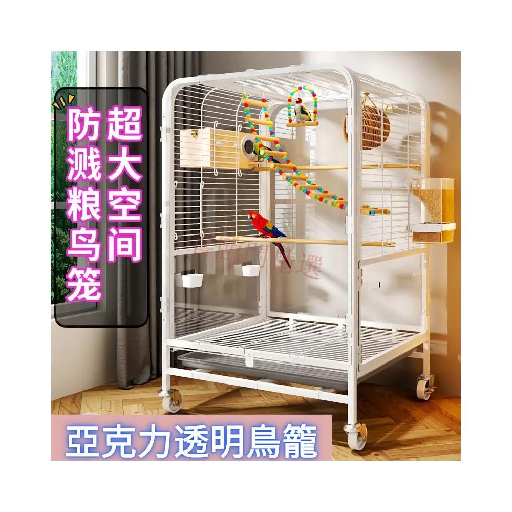 輕奢透明亞剋力鳥籠 防濺透明灑鸚鵡籠 鳥籠 防濺鳥籠 皮玄鳳牡丹別墅繁殖籠 鳥籠 豪華大號別墅大型寵物鳥 家用繁殖籠