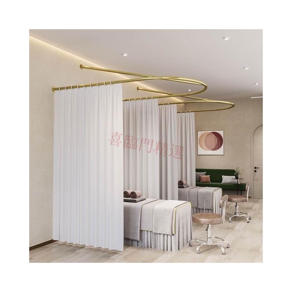 💗專業客製💗簡約純色U型美容院隔斷簾 美容床隔斷 空間隔斷簾 養生館理療床窗簾桿 圍簾支撐架 隔間拉不透紗簾