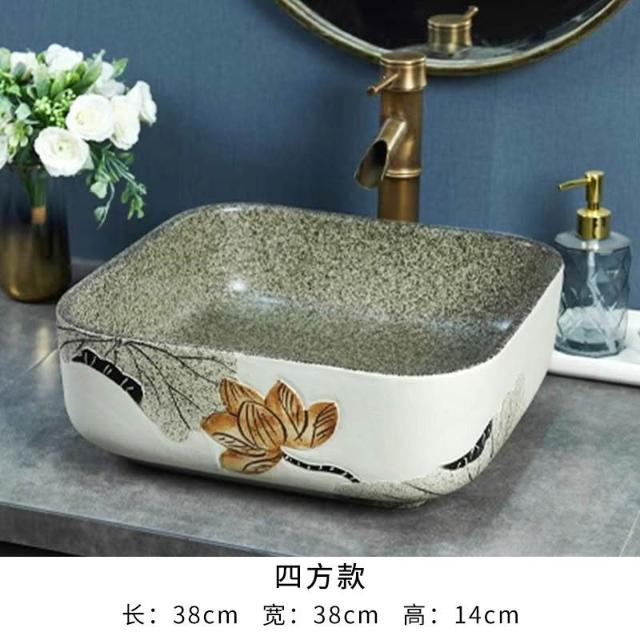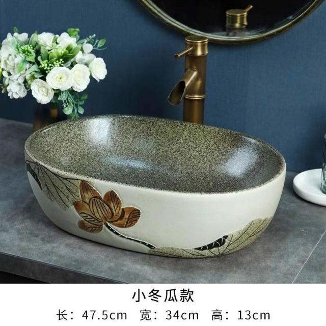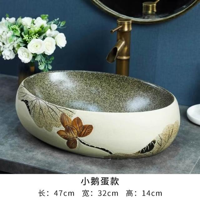 古風新中式洗手盆 輕奢陶瓷臺上洗手盆 優質陶瓷洗臉盆 防濺水衛生間複古陶瓷洗臉盆 陶瓷復古洗手單盆 陶瓷藝術洗手盆