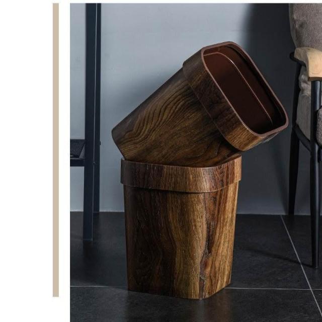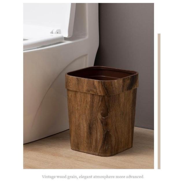 中式復古木紋垃圾桶 中式復古木紋垃圾桶 創意衛生間垃圾桶 大號塑料壓圈紙簍 垃圾桶無蓋