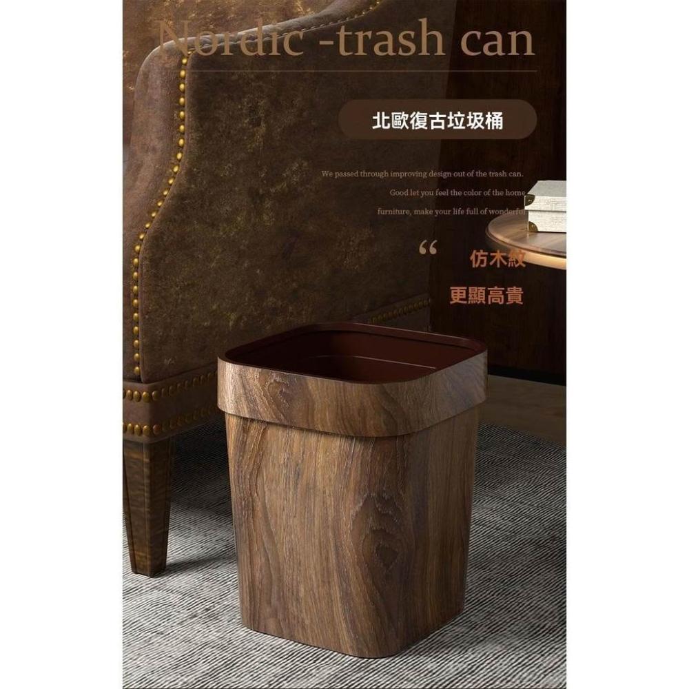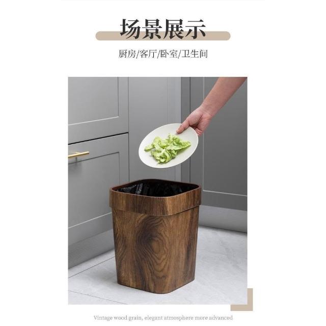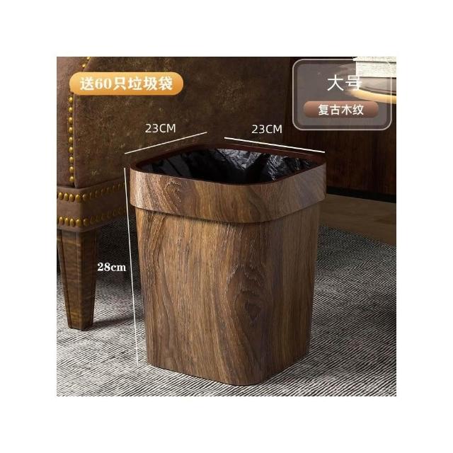中式復古木紋垃圾桶 中式復古木紋垃圾桶 創意衛生間垃圾桶 大號塑料壓圈紙簍 垃圾桶無蓋