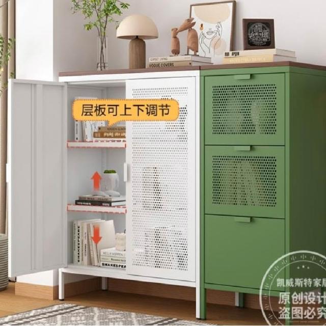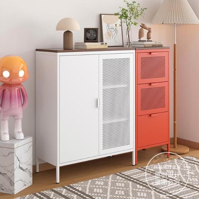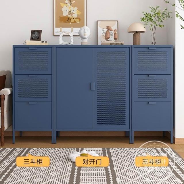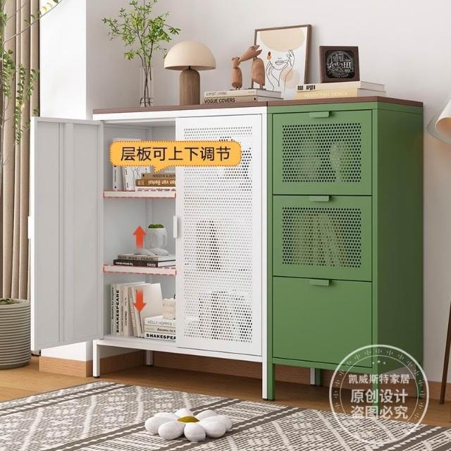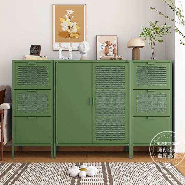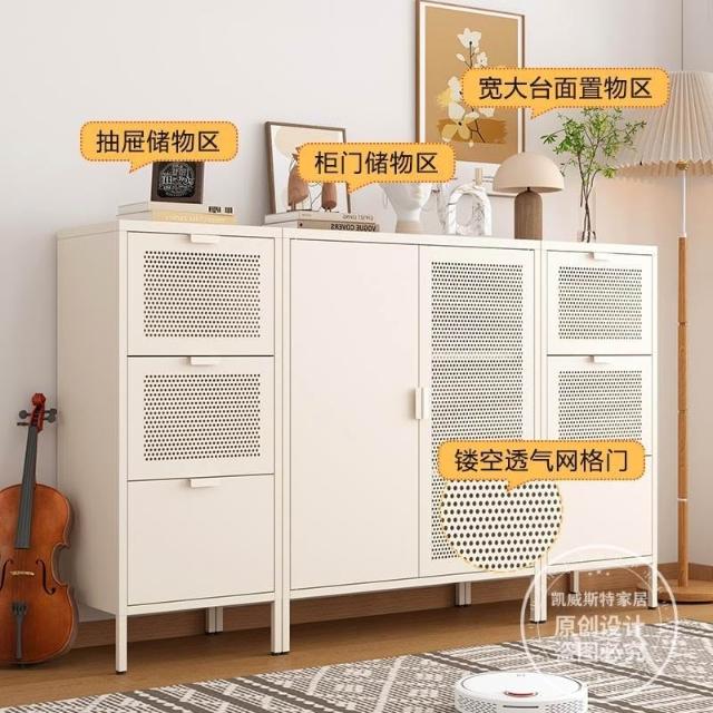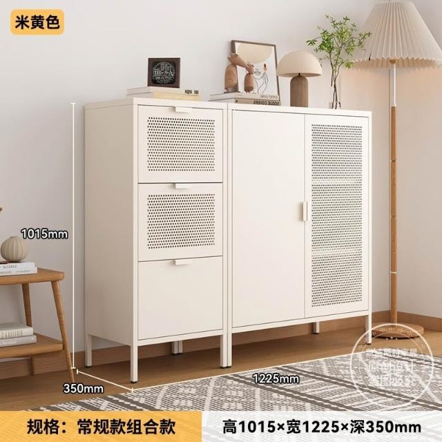 輕奢奶油風大容量鋼製收納櫃 加厚加大鋼製陽臺收納櫃 家用臥室鋼製儲物櫃 多巴胺結實收納櫃置物櫃 防曬防水鋼製陽臺收納櫃子