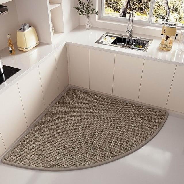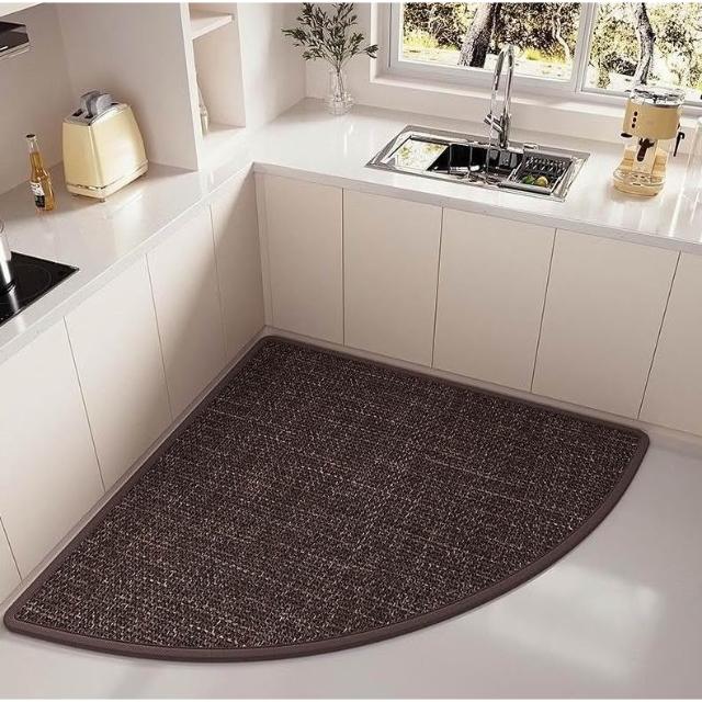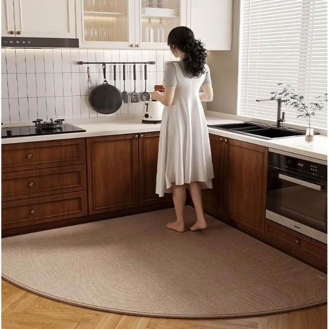 扇形亞麻編織廚房地墊🌈編織防貓抓亞麻手工大地毯💗亞麻編織廚房地墊客制💗 扇形吸水吸油素色棉麻地毯