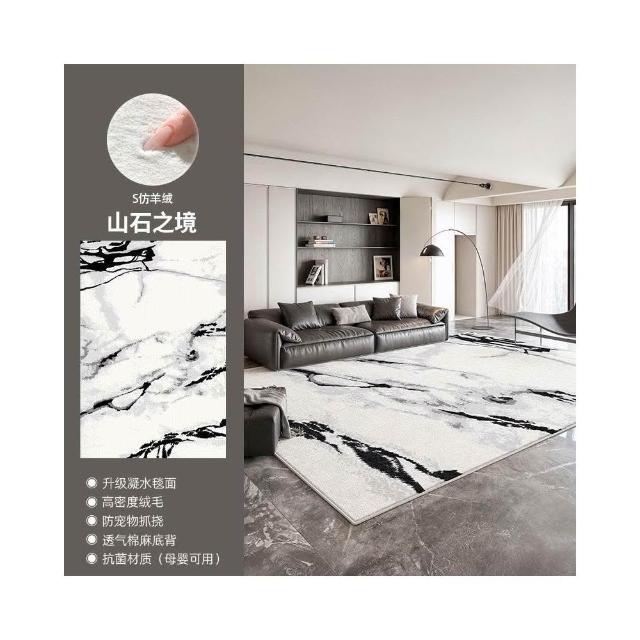 高檔波斯绒地毯🌈免洗可擦水墨畫風 客廳沙發全鋪绒地墊 經典復古 床邊地毯 易打理防水地毯 加厚耐磨沙發地墊