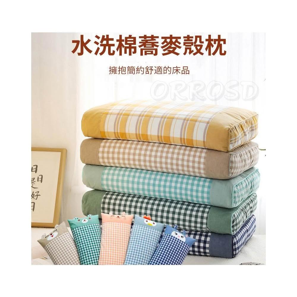 蕎麥枕 蕎麥殼填充 枕頭 純蕎麥殼枕頭 蕎麥枕頭 雙層內芯水洗棉枕套 枕套可拆洗 透氣涼爽 格子枕頭 頸椎牽引枕