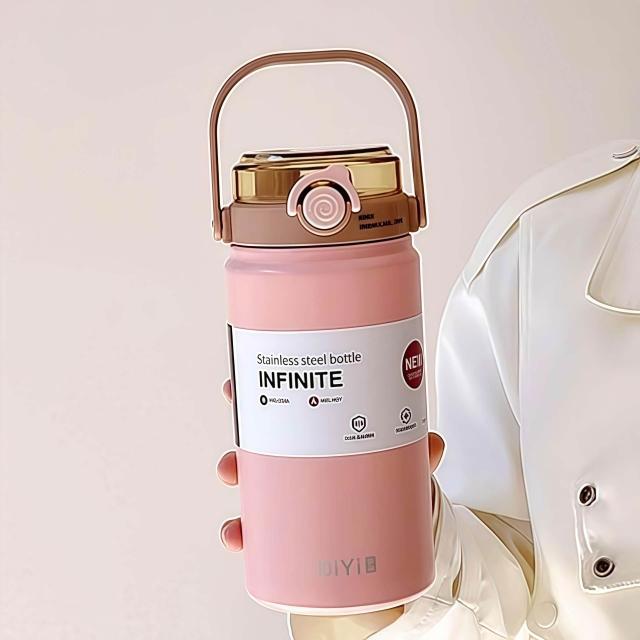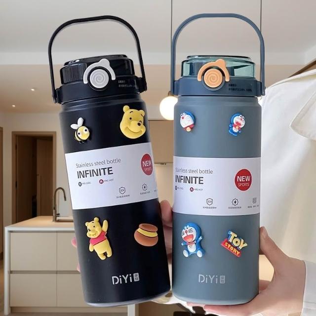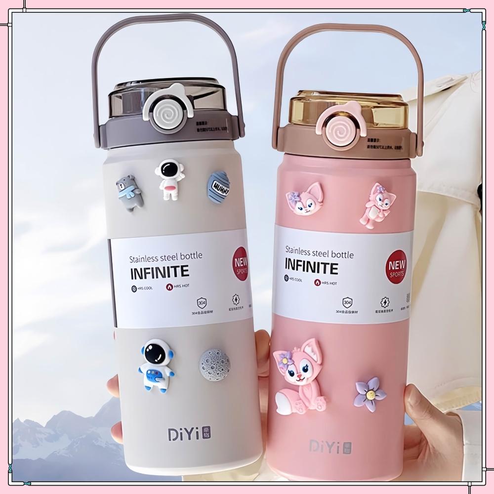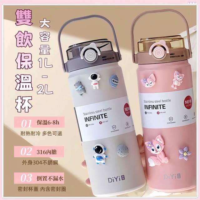 台中出貨 雙飲吸管保溫杯 大容量1L保溫杯 可爱 倒置不漏 隨行杯 咖啡杯 水杯 冰霸杯 環保杯