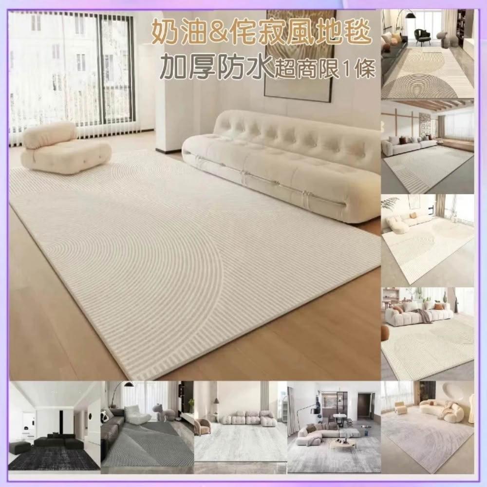 台灣出貨 客廳地毯 防水防污 5mm印花地毯 新款日式奶油風 侘寂風 可客製化 ins風 北歐風 耐髒 地墊 臥室床邊