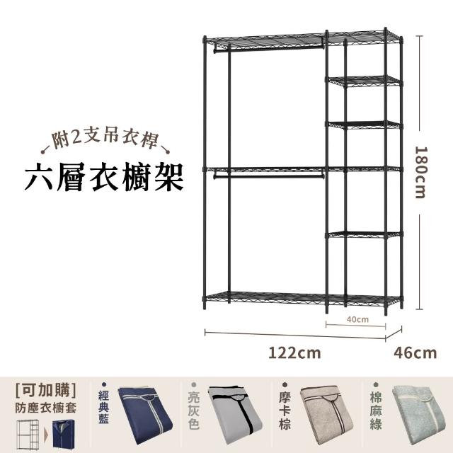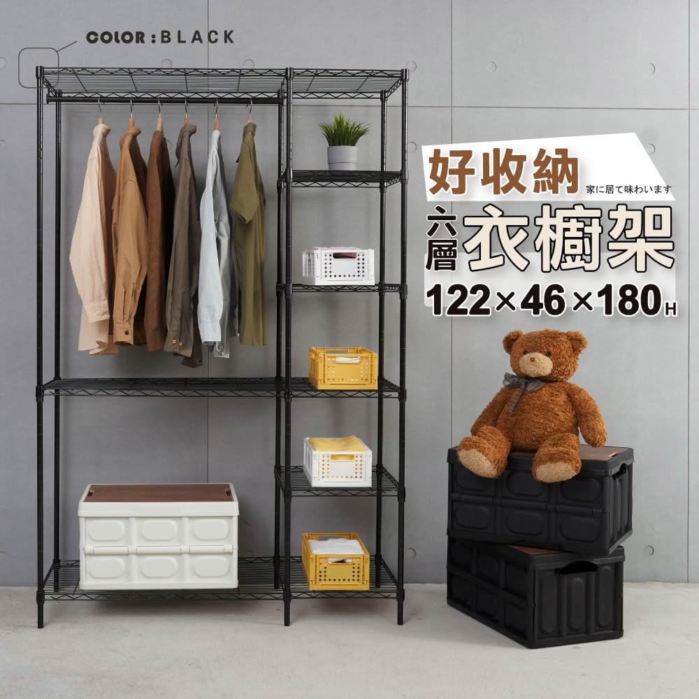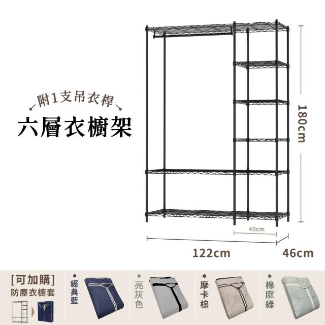 KIWISH 奇意生活館六層衣櫥架122X46X180cm 台灣製大容量 衣櫥收納架 收納架 掛衣架 組合衣櫃 鐵力士架 衣櫥 衣櫃 衣櫥架
