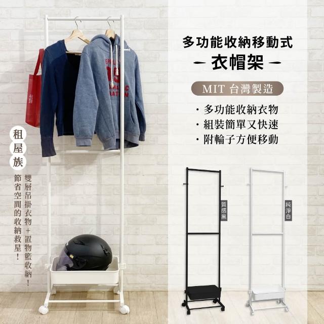 KIWISH 奇意生活館台灣製 MIT多功能收納衣帽架 (附置物籃 輪子) 落地衣架 掛衣架 吊衣架 衣帽架 開放式衣架 簡易衣架