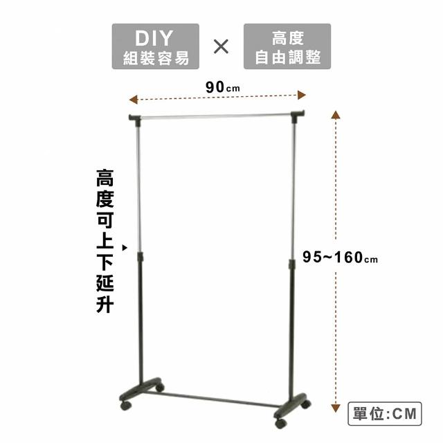 KIWISH 奇意生活館台灣製 MIT單桿曬衣架(附活動輪) 可上下伸縮 吊衣桿 吊衣架 曬衣架 衣架 晾衣架 掛衣架 曬衣