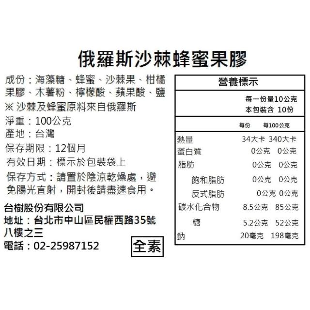 洋可夫俄羅斯沙棘蜂蜜果膠軟糖 100g