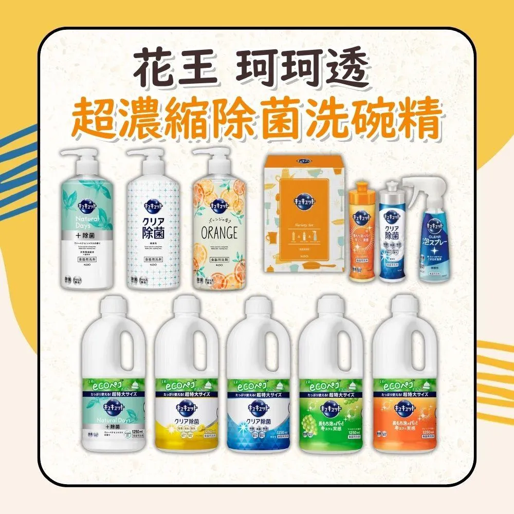 Kao 花王珂珂透Cucute 超濃縮除菌洗碗精 (特大補充瓶 1250ml/按壓瓶480ml/禮盒組) 日初居家