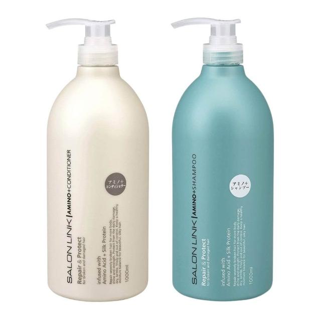 KUM 熊野Salon Link 胺基酸高效絲滑 超值1+1洗潤套組 1000ml 洗髮精 洗髮乳 潤髮乳 護髮 保濕 修護 日初居家