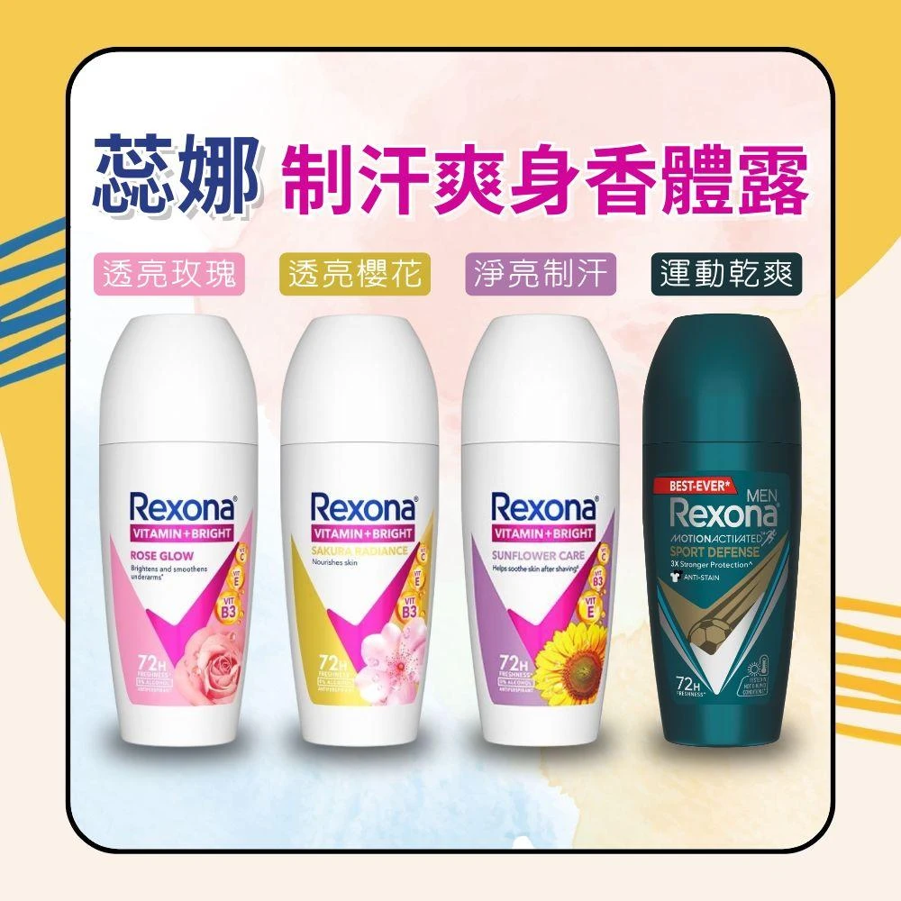 Rexona 蕊娜制汗爽身香體露 45ml 公司貨(淨亮制汗/透亮玫瑰/透亮櫻花/運動乾爽) 日初居家