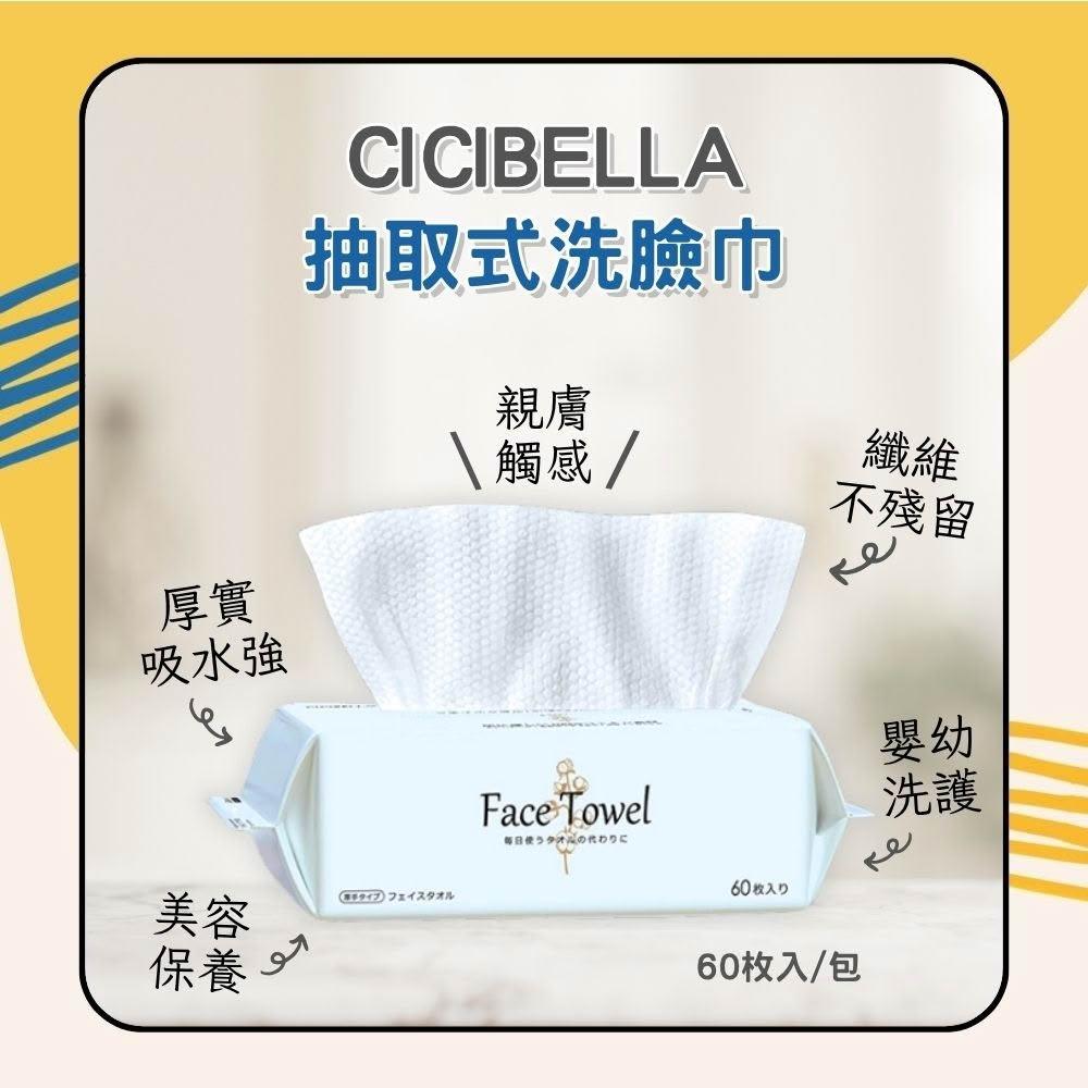 CICIBELLA抽取式洗臉巾 60枚 乾濕兩用 拋棄式洗臉巾 卸妝巾 美容巾 擦臉巾 一次洗臉巾 拋棄式毛巾 日初居家