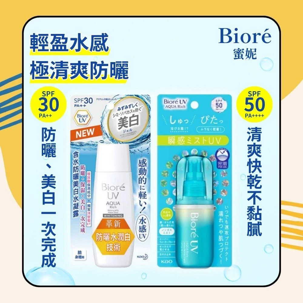 Biore 蜜妮含水防曬水珠噴霧 60ml / 防曬美白水凝露 90ml 公司貨 日初居家