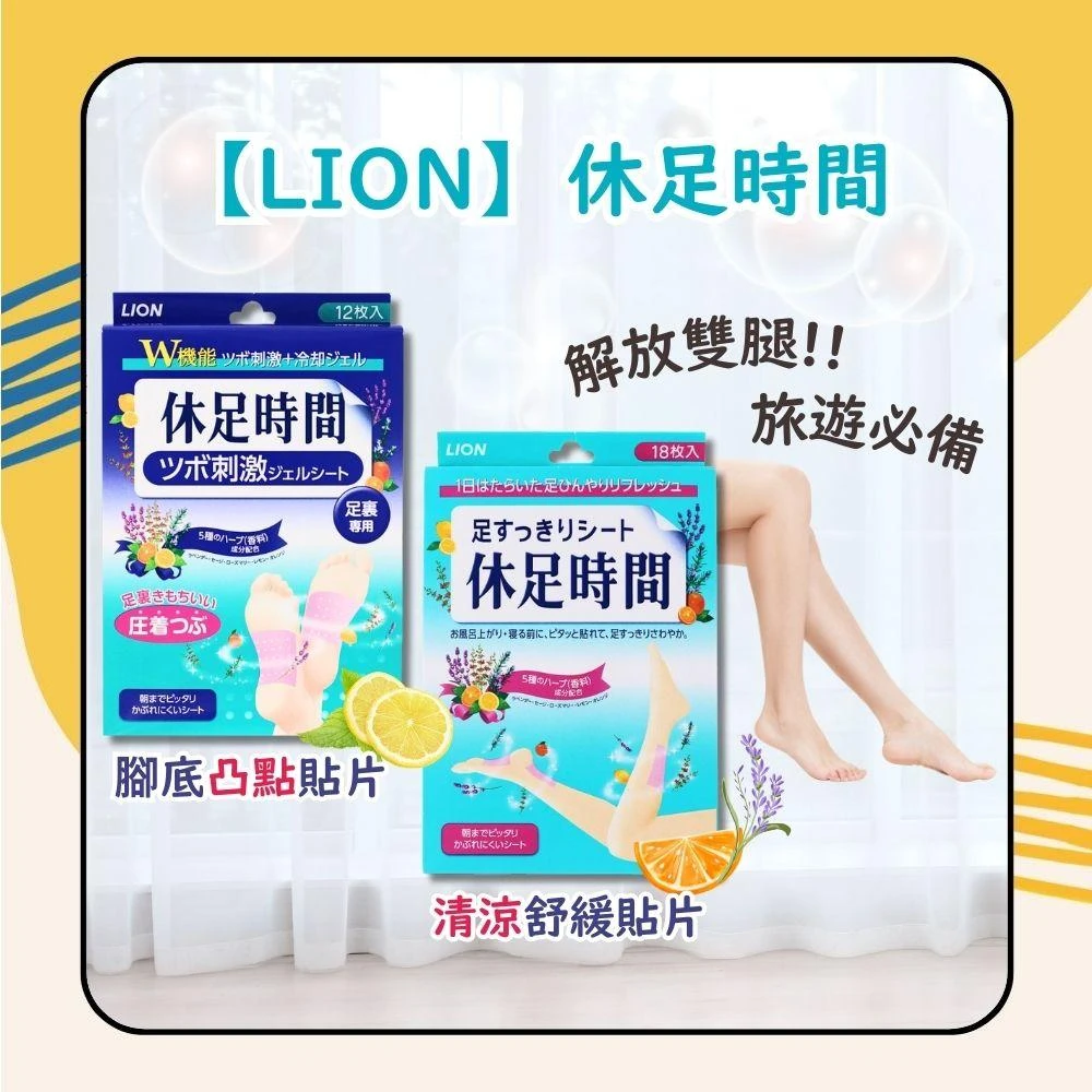 LION 獅王休足時間 清涼舒緩貼片 18枚入 / 腳底凸點貼片 12枚入日初居家