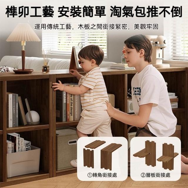 HOME宜家雙層收納櫃 組合書櫃 落地書櫃 矮書櫃 客廳書櫃 實木書櫃 兒童書櫃 客廳置物架 格子櫃 展示櫃
