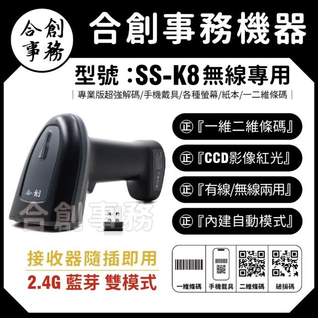 Co-create 合創SS-K8『2.4G/藍芽 無線雙模式』一維 二維 無線條碼掃描器 條碼掃描器 發票載具螢幕