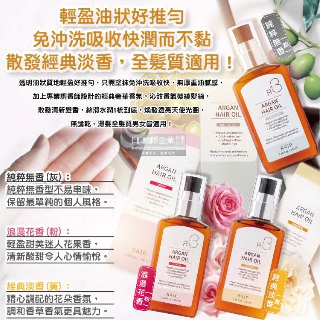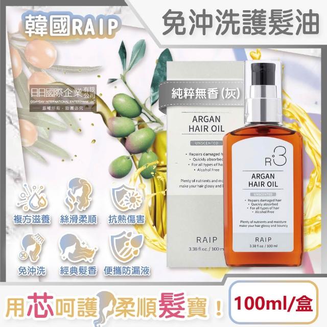 韓國RAIP-免沖洗柔順香氛護髮油-純粹無香(灰)100ml/盒(R3菁粹摩洛哥堅果油滋養髮絲潤澤精華油秀髮亮澤水潤安瓶髮尾護理保養阿甘油乾濕兩用護髮膜)