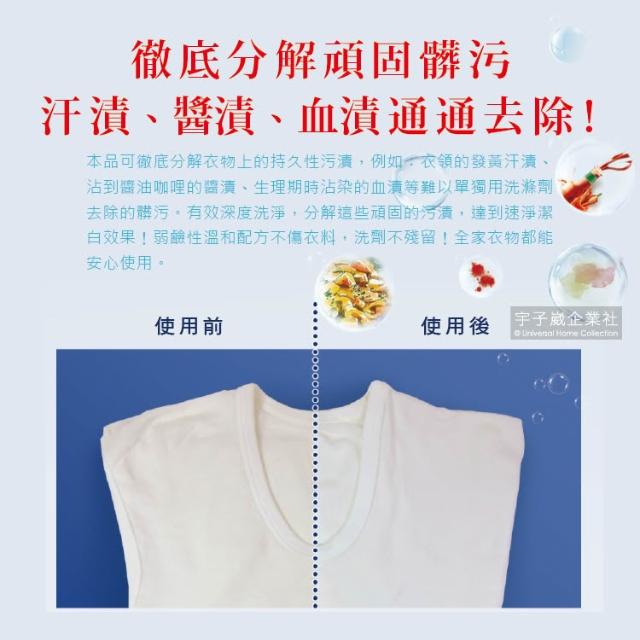 - 分解汗漬、醬漬、血漬解頑固髒污