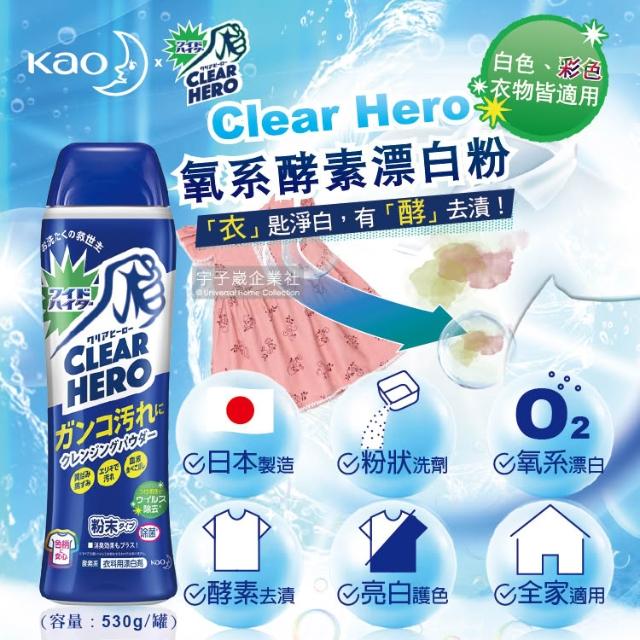 Kao 花王日本Clear Hero氧系酵素漂白洗衣粉530g/罐(弱鹼性溫和漂白衣物清潔劑白色衣物彩色衣物去漬洗劑)