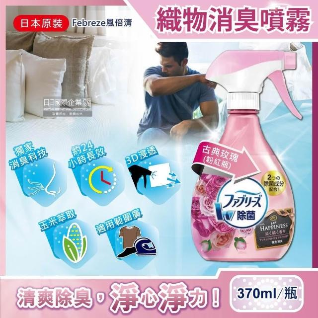 Febreze日本風倍清-運動衣物除臭噴霧-古典玫瑰香370ml/粉紅瓶(浸透織物強力消臭噴霧衣服類安全帽鞋子除臭劑衣物香氛噴霧)