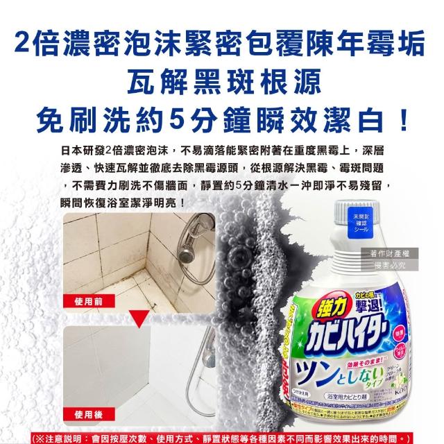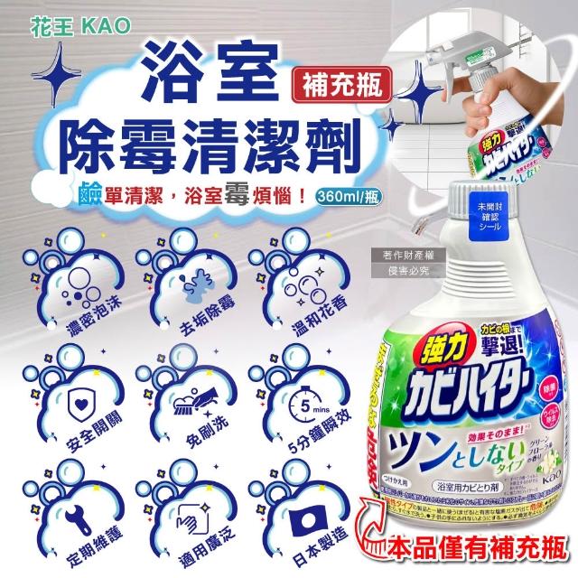 Kao 花王日本KAO花王-浴室免刷洗強力除霉鹼性泡沫清潔劑補充瓶360ml/瓶-溫和花香(廁所洗劑瓶衛浴縫除垢噴霧防霉)