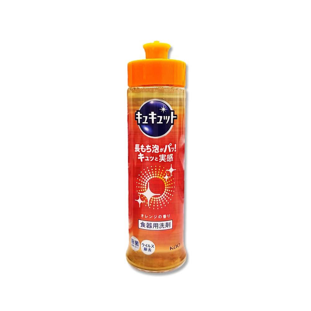 Kao 花王日本CUCUTE珂珂透-去重油汙洗碗精-柑橘香240ml/橘瓶(KAO花王泡沫食器除漬高效濃縮洗滌清潔劑廚房餐具砧板海綿洗碗凝露防漏液拉拔蓋洗潔精)