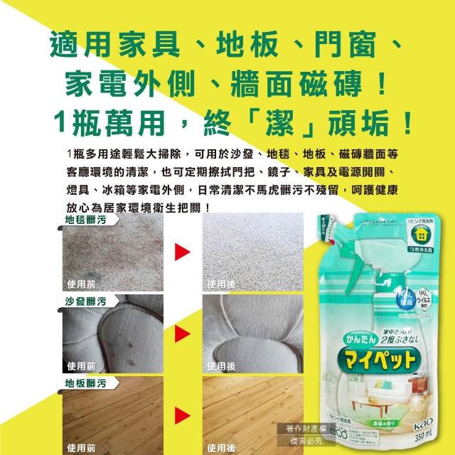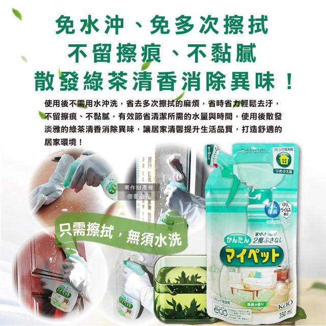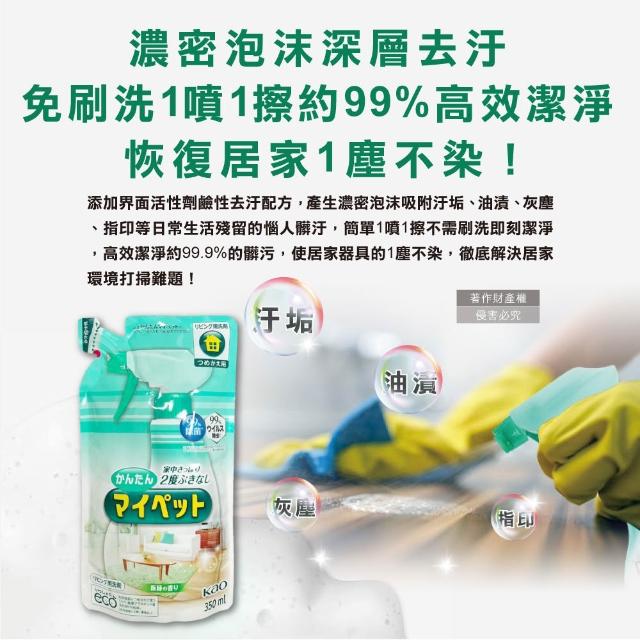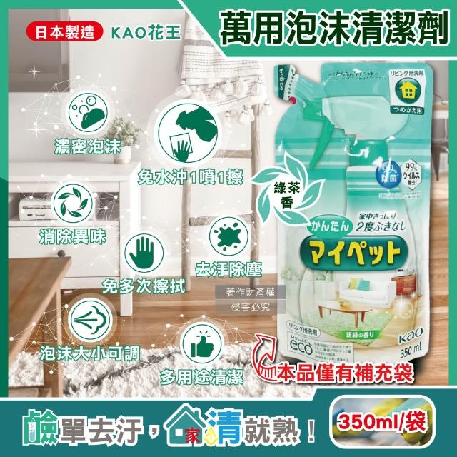 Kao 花王日本KAO花王-沙發清潔劑補充包-綠茶香350ml/淺綠袋_本品不含噴霧瓶(淡淡綠茶香氣萬用清潔劑居家傢俱除塵去汙劑玻璃除指紋鹼性泡沫清潔噴霧居家客廳地板窗框燈具皆適用)