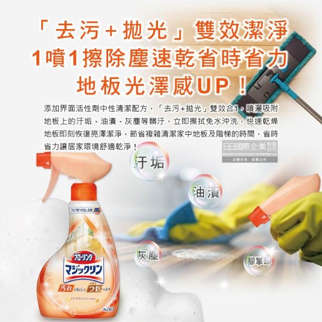 Kao 花王居家地板去污拋光中性噴霧清潔劑-柑橘香400ml/淺橘瓶(木地板專用日本KAO花王免水洗芳香消臭速乾去垢劑塑料板打蠟過的地板皆適用)