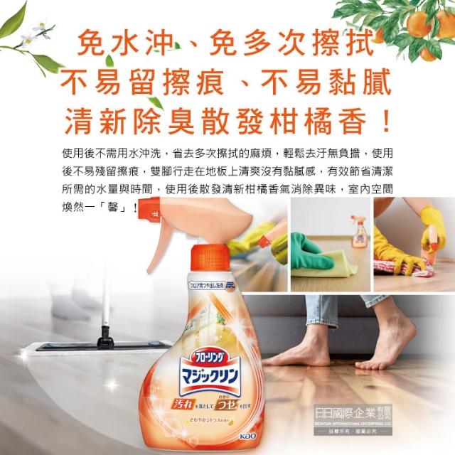 Kao 花王居家地板去污拋光中性噴霧清潔劑-柑橘香400ml/淺橘瓶(木地板專用日本KAO花王免水洗芳香消臭速乾去垢劑塑料板打蠟過的地板皆適用)