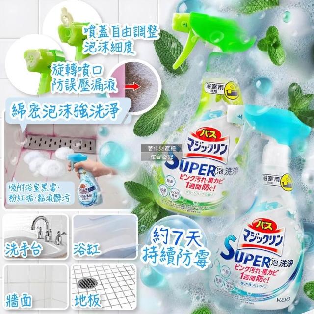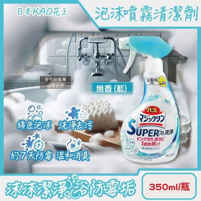 Kao 花王日本KAO花王-SUPER泡洗淨浴室除垢防霉消臭泡沫噴霧清潔劑350ml/無香-藍瓶(衛浴磁磚粉紅漬清洗洗手台排水口皂垢