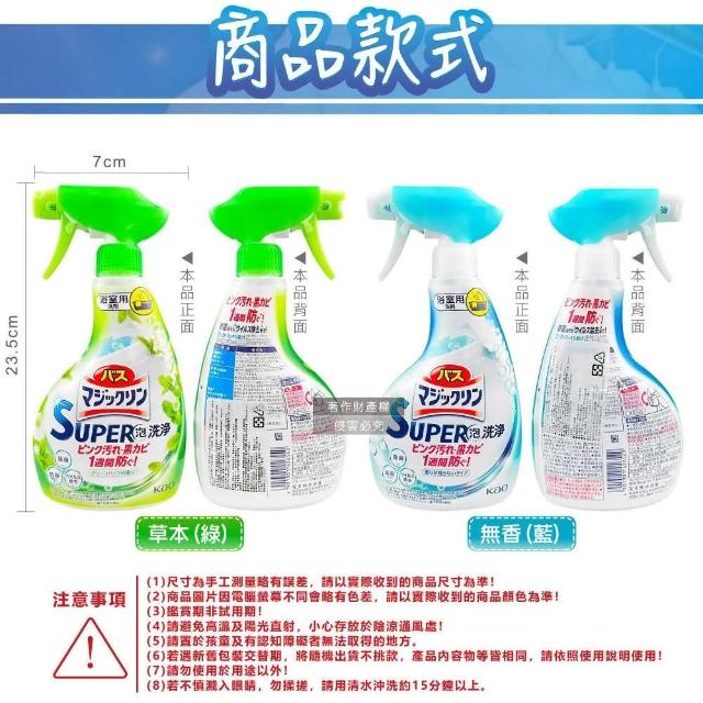 Kao 花王日本KAO花王-SUPER泡洗淨浴室除垢防霉消臭泡沫噴霧清潔劑350ml/無香-藍瓶(衛浴磁磚粉紅漬清洗洗手台排水口皂垢