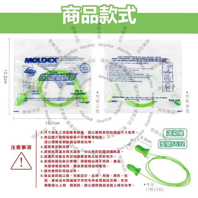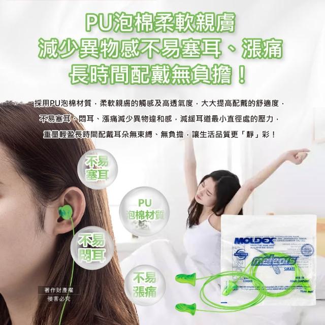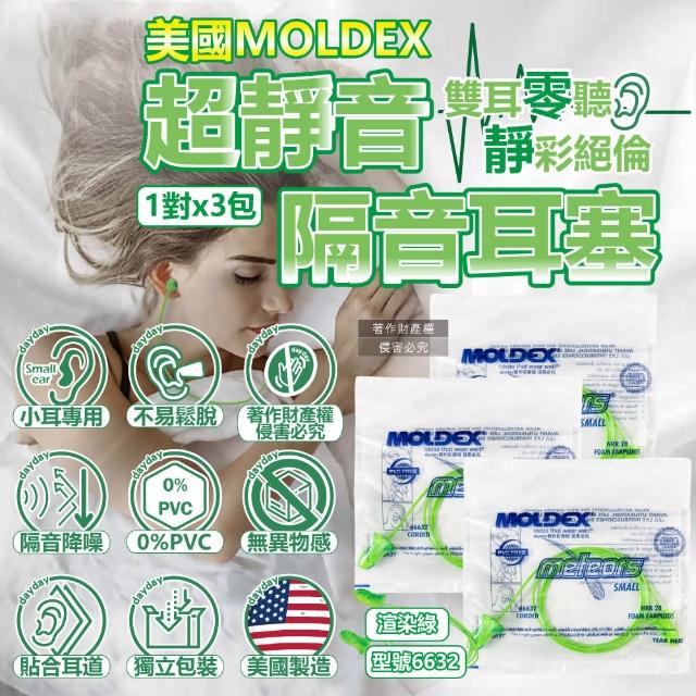 生活良品(3包超值組)美國MOLDEX-Meteors小耳道專用鐘型曲線PU慢回彈超靜音耳塞-型號6632帶線版1對/包(NRR
