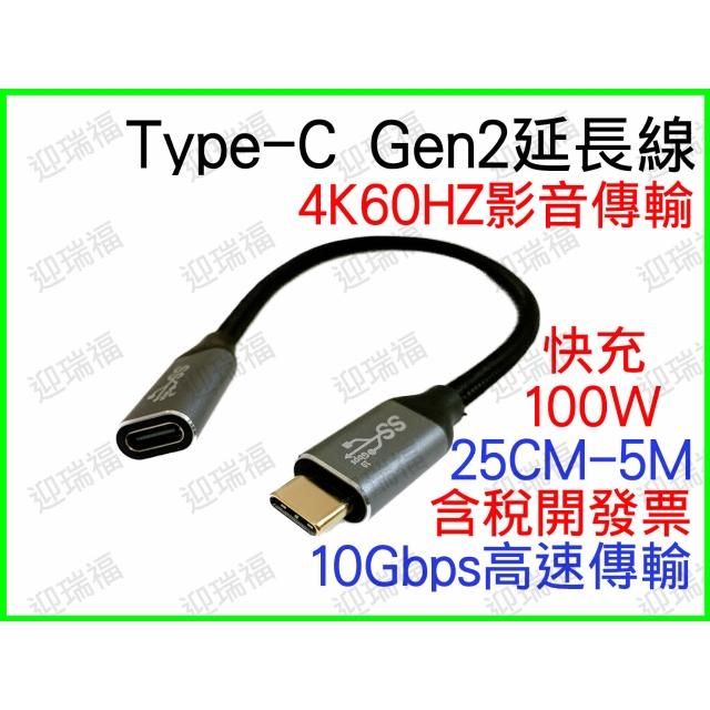 Type-C 3.1 GEN2 25公分 50公分 1M 2M 3M 5M 公母 延長 影音傳輸線 typec 100w 4k 10Gb 延長線 公對母