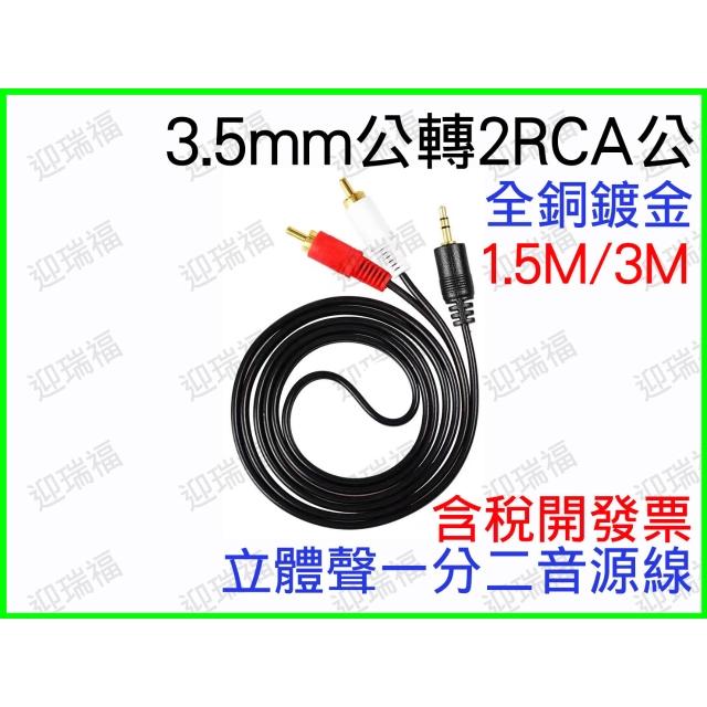 3.5mm轉紅白 1分2 蓮花頭 立體聲一分二音頻線 3.5mm 轉 AV 2RCA 轉換線 3.5公轉RCA公 轉接線