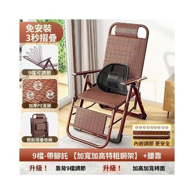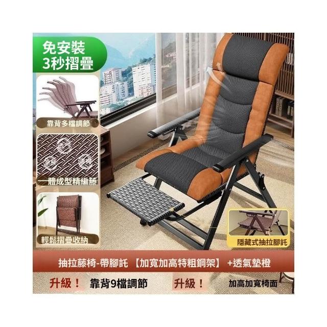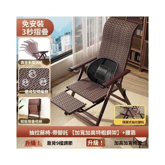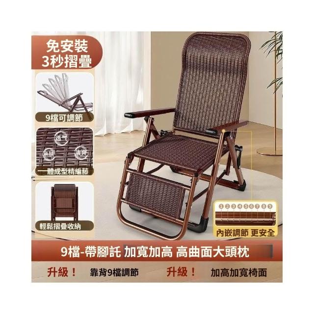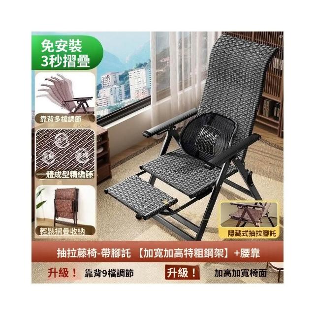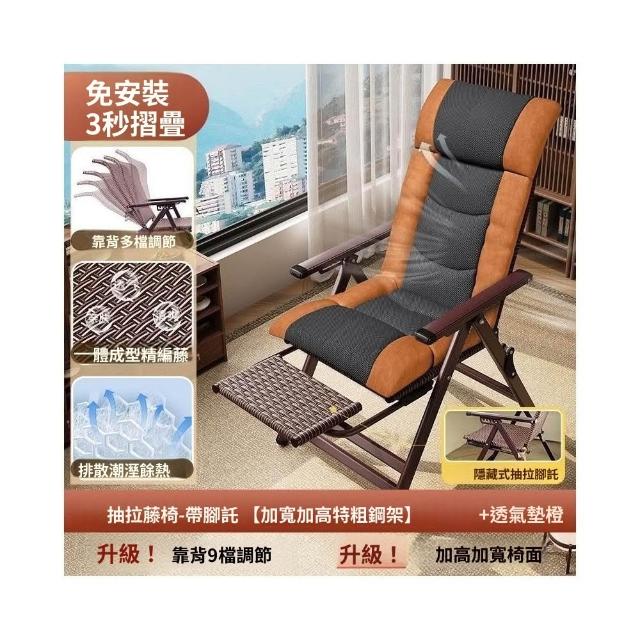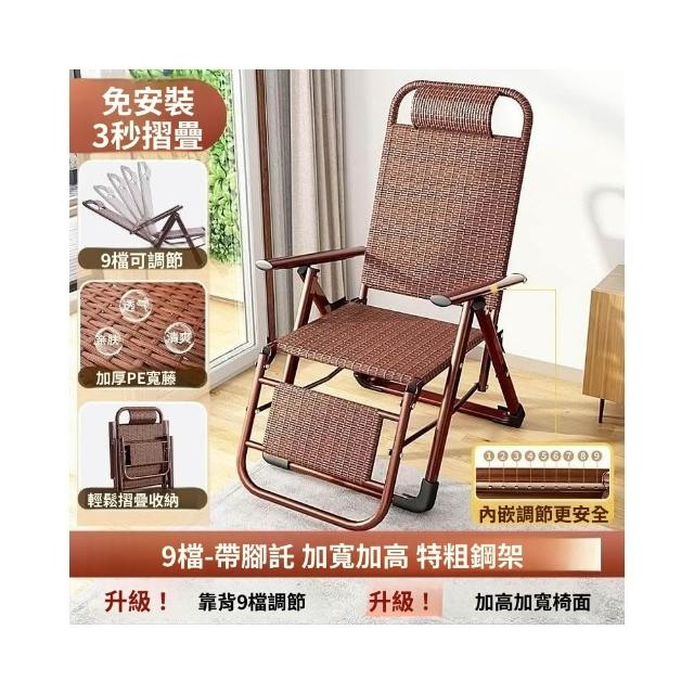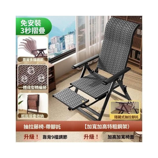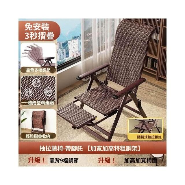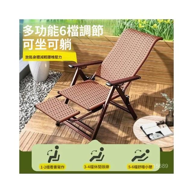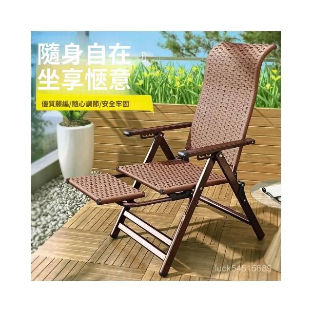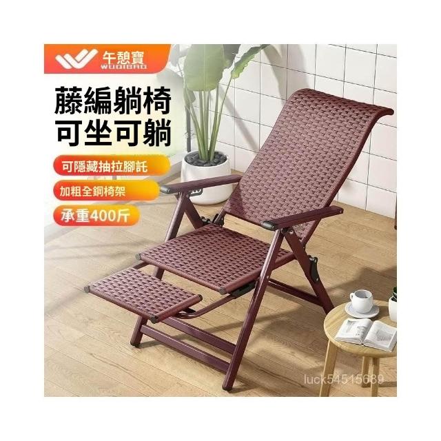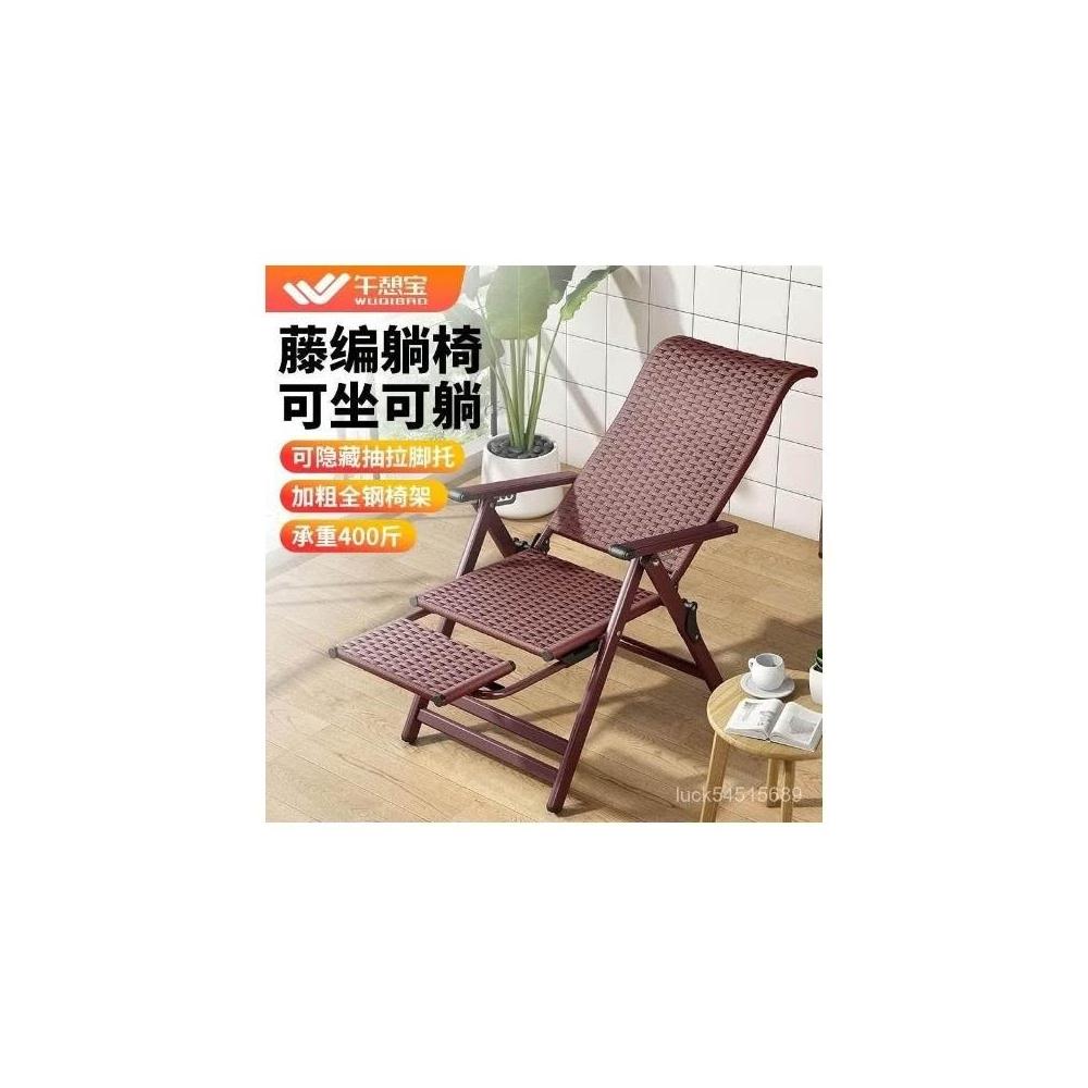 -下殺免運- 藤編折疊 躺椅 午休椅子家用午睡老人陽臺休閒涼椅懶人靠背椅 美居生活屋