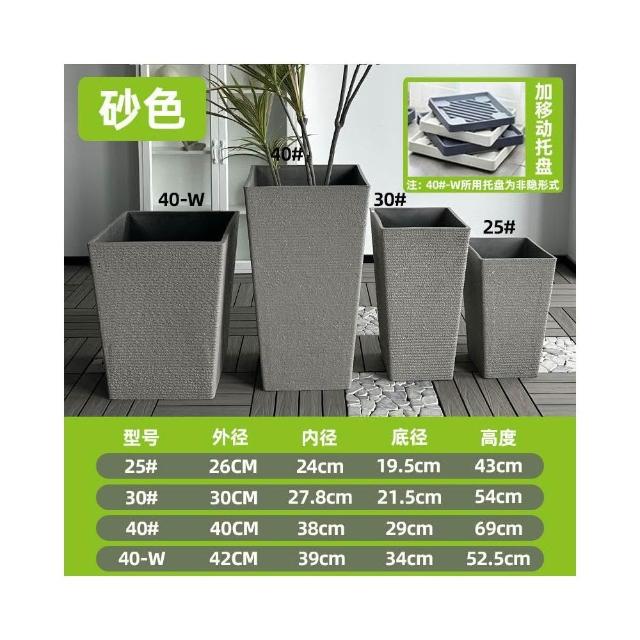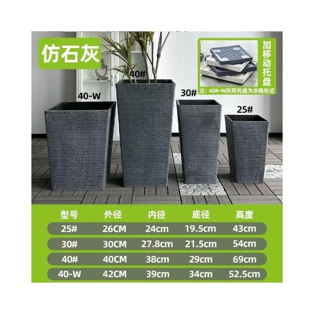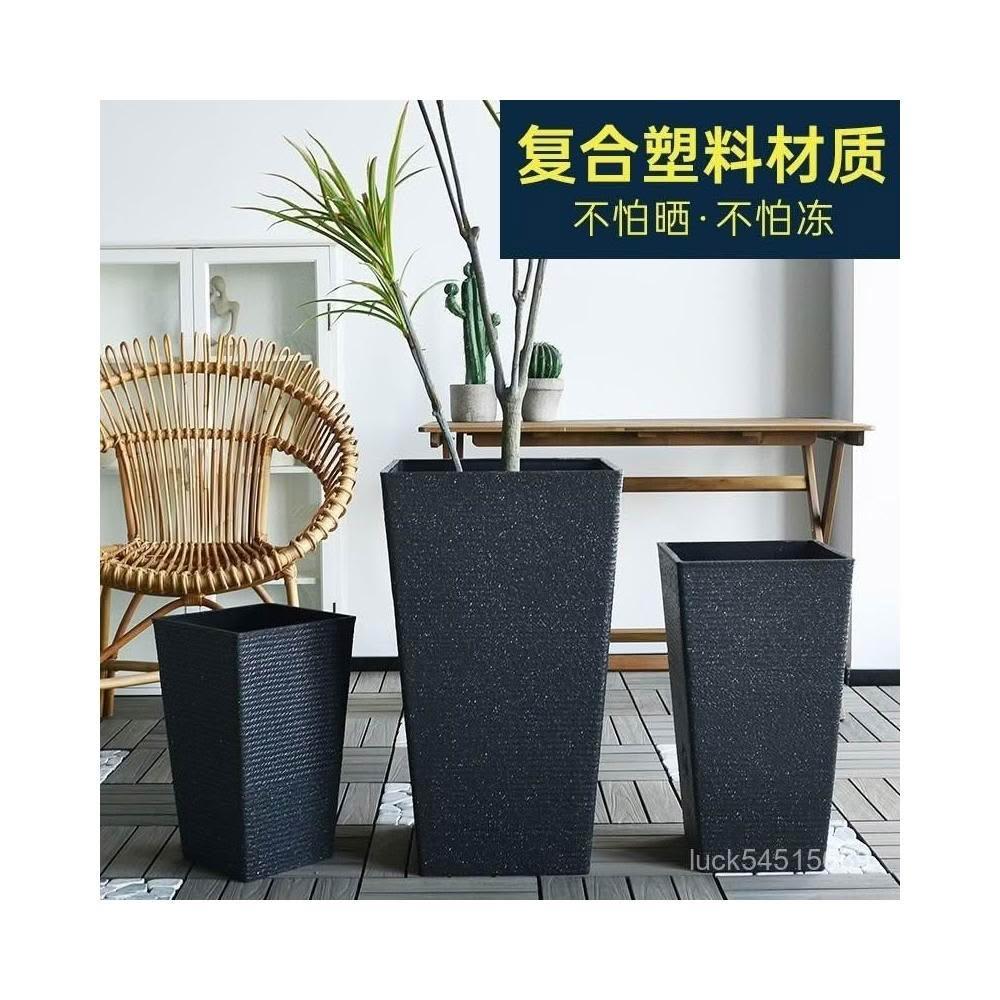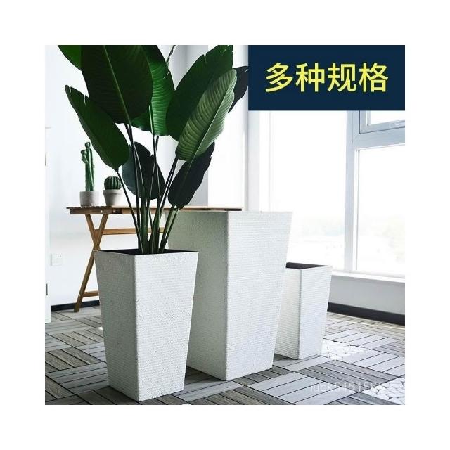 熱銷 免運~方形高款簡約輕奢花盆塑料仿水泥室內散尾葵天堂鳥盆栽樹脂大 花盆