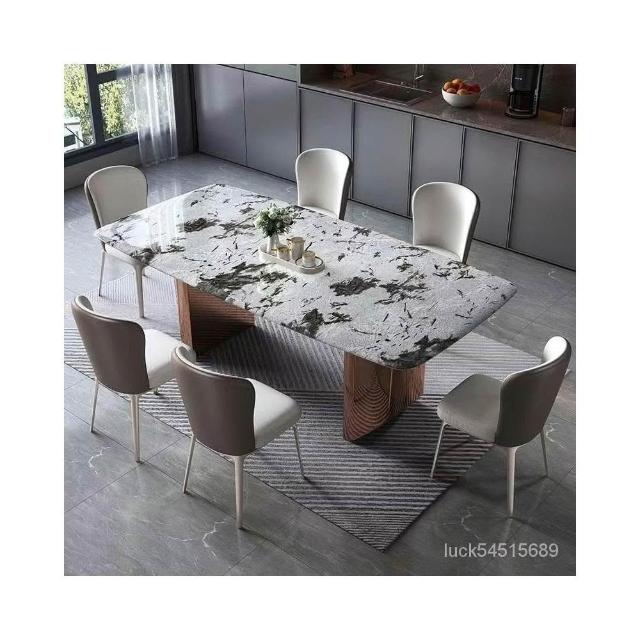 優選~含運/天然大理石 餐桌 長方形簡約超微晶巖原石餐桌椅組閤亮光小戶型傢居 美居生活屋