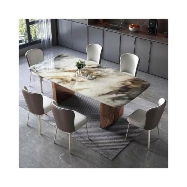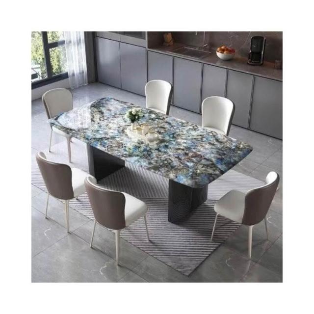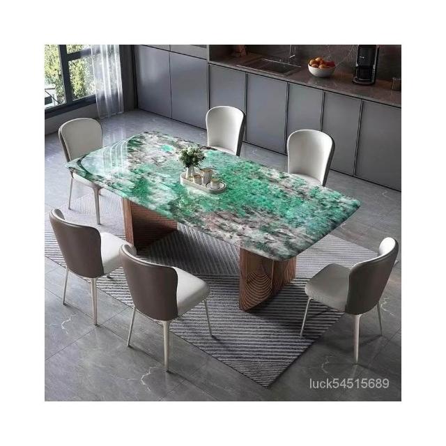 優選~含運/天然大理石 餐桌 長方形簡約超微晶巖原石餐桌椅組閤亮光小戶型傢居 美居生活屋