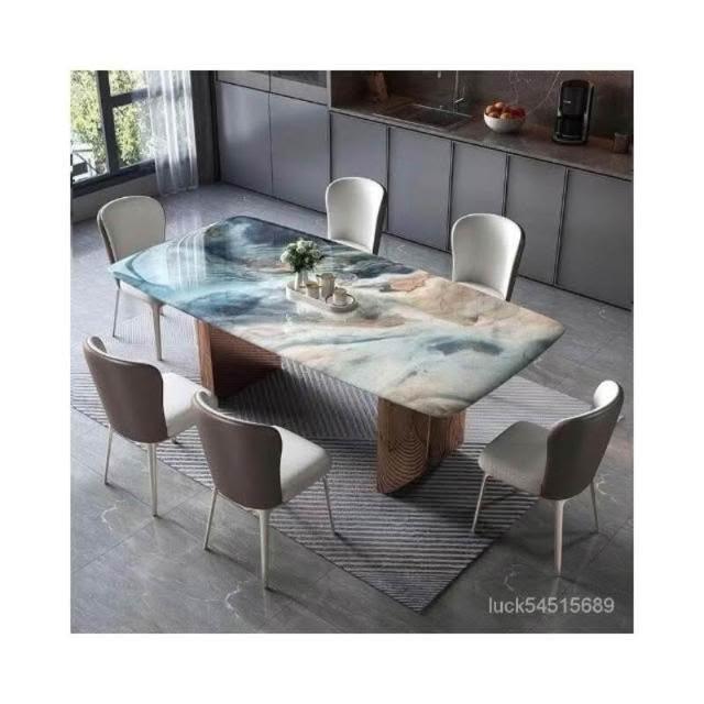 優選~含運/天然大理石 餐桌 長方形簡約超微晶巖原石餐桌椅組閤亮光小戶型傢居 美居生活屋