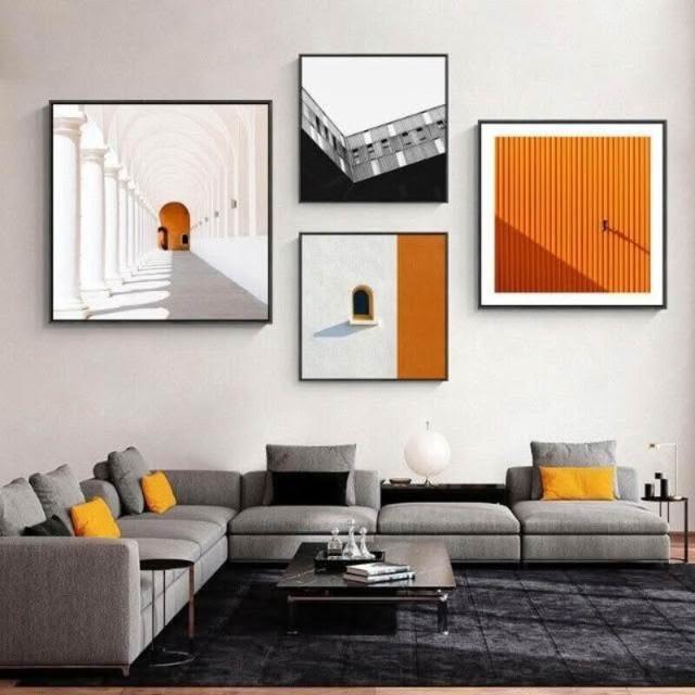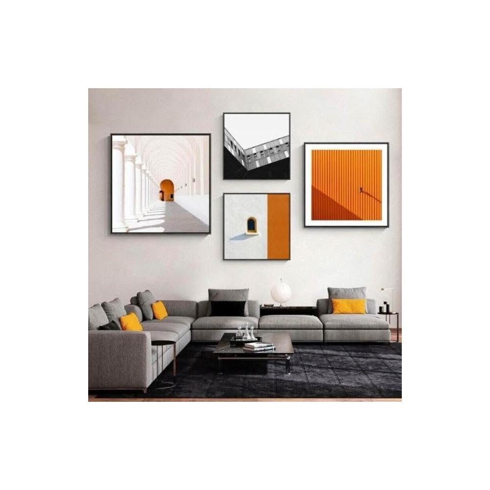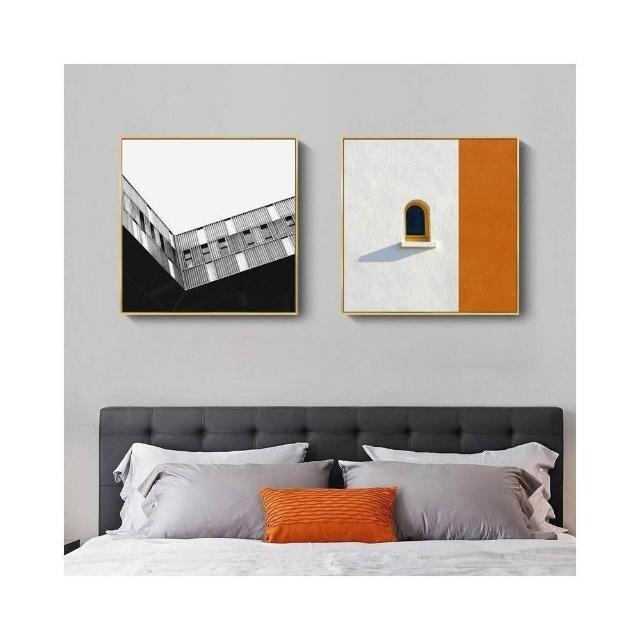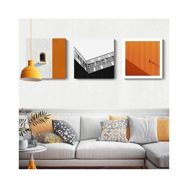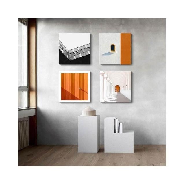熱銷【美藝家居】簡約現代客廳掛畫 工業風橙色建築空間公寓酒店民宿方形藝術裝飾畫 客廳玄關餐廳壁畫壁貼 居家民宿店面裝飾畫 美居生活屋