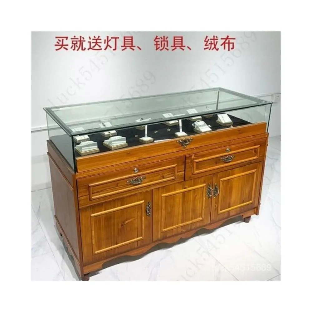 珠寶展示櫃實木透明玻璃櫃臺玉器翡翠文玩店定製陳列櫃展櫃子帶燈 美居生活屋