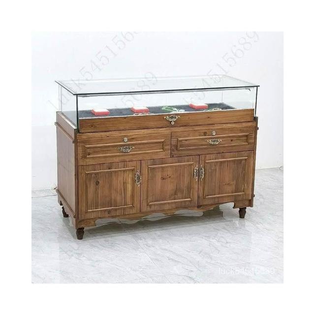 珠寶展示櫃實木透明玻璃櫃臺玉器翡翠文玩店定製陳列櫃展櫃子帶燈 美居生活屋